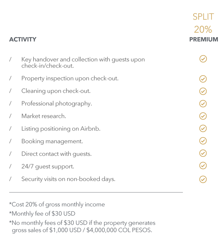 We are a Colombian-American organization with 15 years of experience in the real estate and short-term rental business. We manage more than 70 units in two countries, have over 52,400 guests, and have over 1,900 reviews on our profile, helping you position your property.